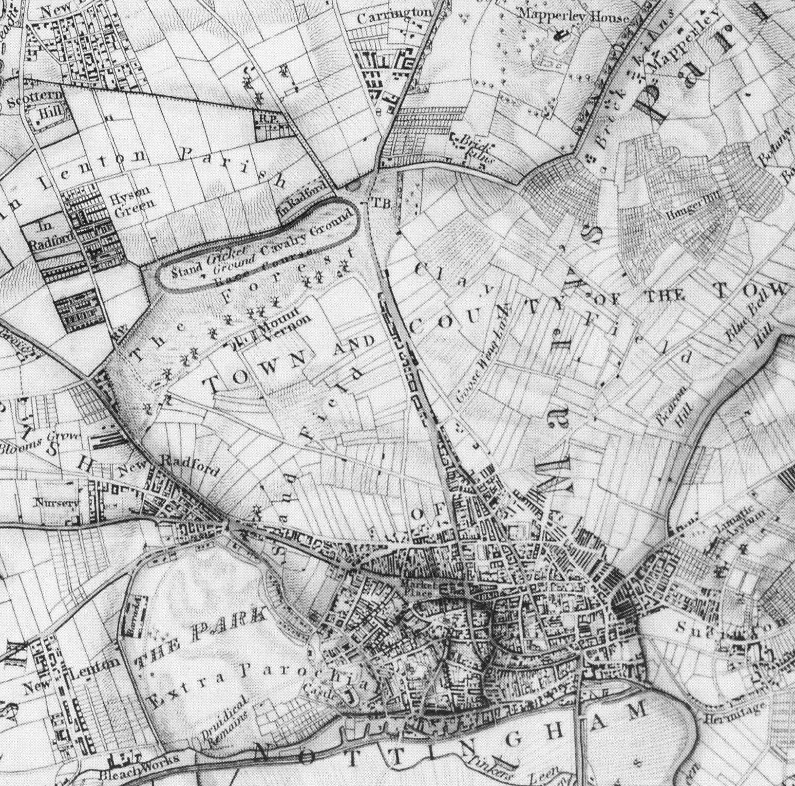 That the site remained green at all by this point was down to Nottingham’s idiosyncratic urban development. Throughout the 16th and 17th centuries, the city was shaped by its parks, wide roads and fashionable housing. But, by the early 18th century, the area’s booming hosiery and lace industry meant factories and tenements were mushrooming, squashed within the legal boundary of the town walls.