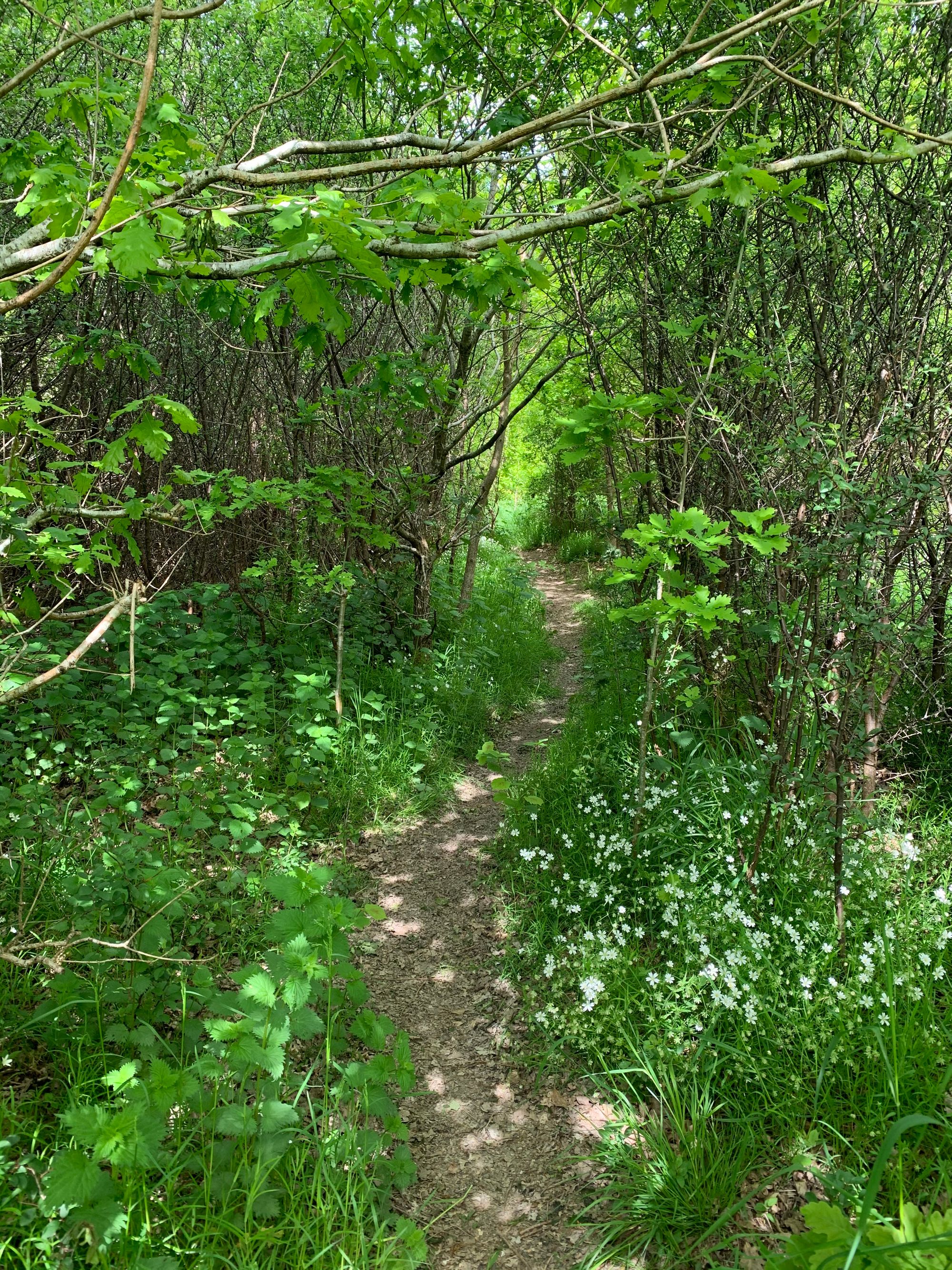These woods are all verdure and luminosity. Silhouettes of leaves perform like shadow puppets on the path as we pilgrims pass through gently in holy silence. It is temple, shrine and church.